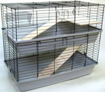 Zur Zeit haust Otti in zwei Umzugskartons, die wir mittels Papptunnel verbunden haben, damit er’s nicht sooooooooo eng hat, und die wir im Gästeklo und dem daran angrenzendem Windfang plaziert haben, denn Igel dürfen es nicht zu warm haben. So mit aufm Sofa liegen und Kuscheln is also nich. Da diese Behausung an sich zu klein ist, denn Igel wandern und klettern gerne, haben wir bei ebay einen riesigen (120x59x97cm !!!), zweistöckigen Kaninchenkäfig für die lächerliche Summe von 61,- € inkl. Versand ersteigert: